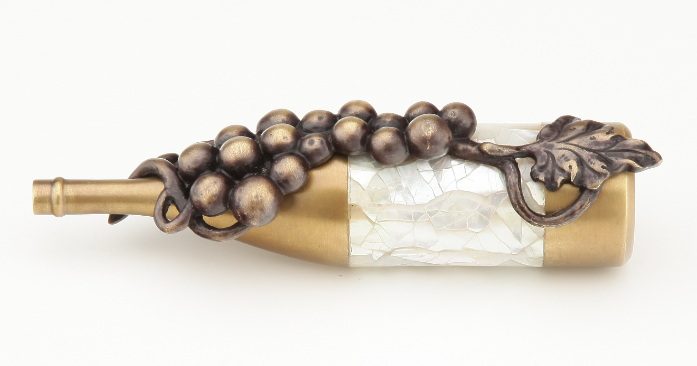 - Description: Solid Brass, Symphony, Wine Themes, Wine Bottle w/Grapes Pull, 1-1/2"cc, Antique Brass/Dark Bronze Hi-Lited finish