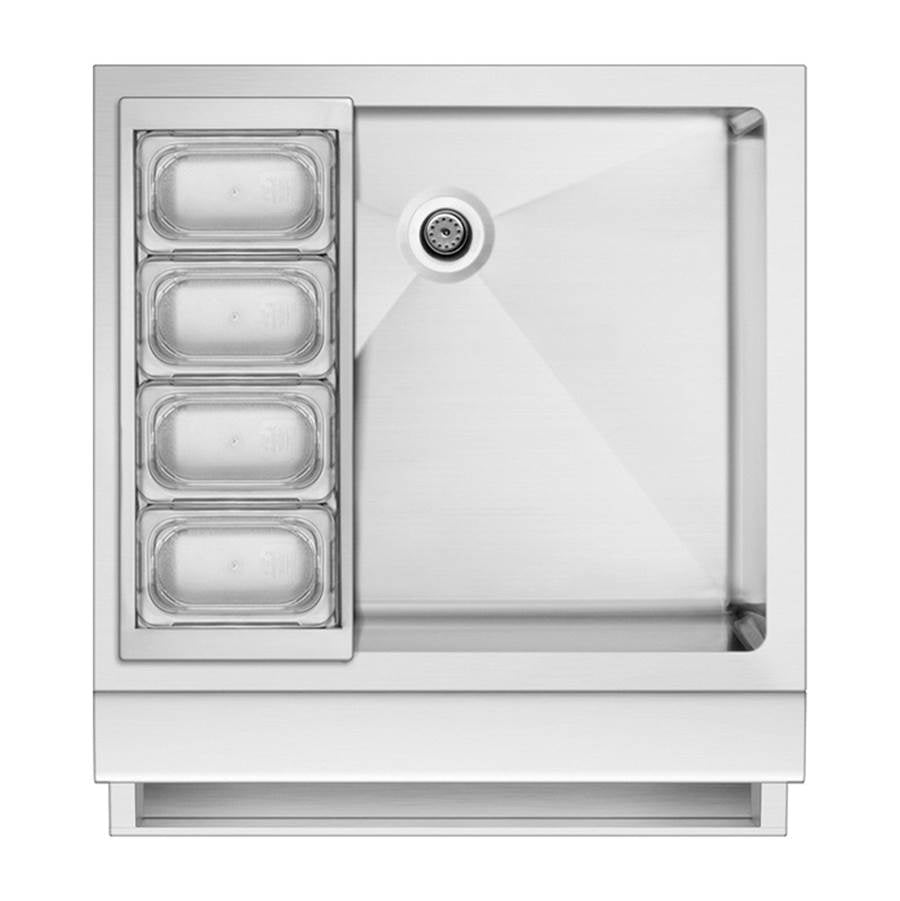 The accessory designed to house 1 liter bottles can be installed at the front of your beverage chiller freeing it up to be used as an outdoor sink.