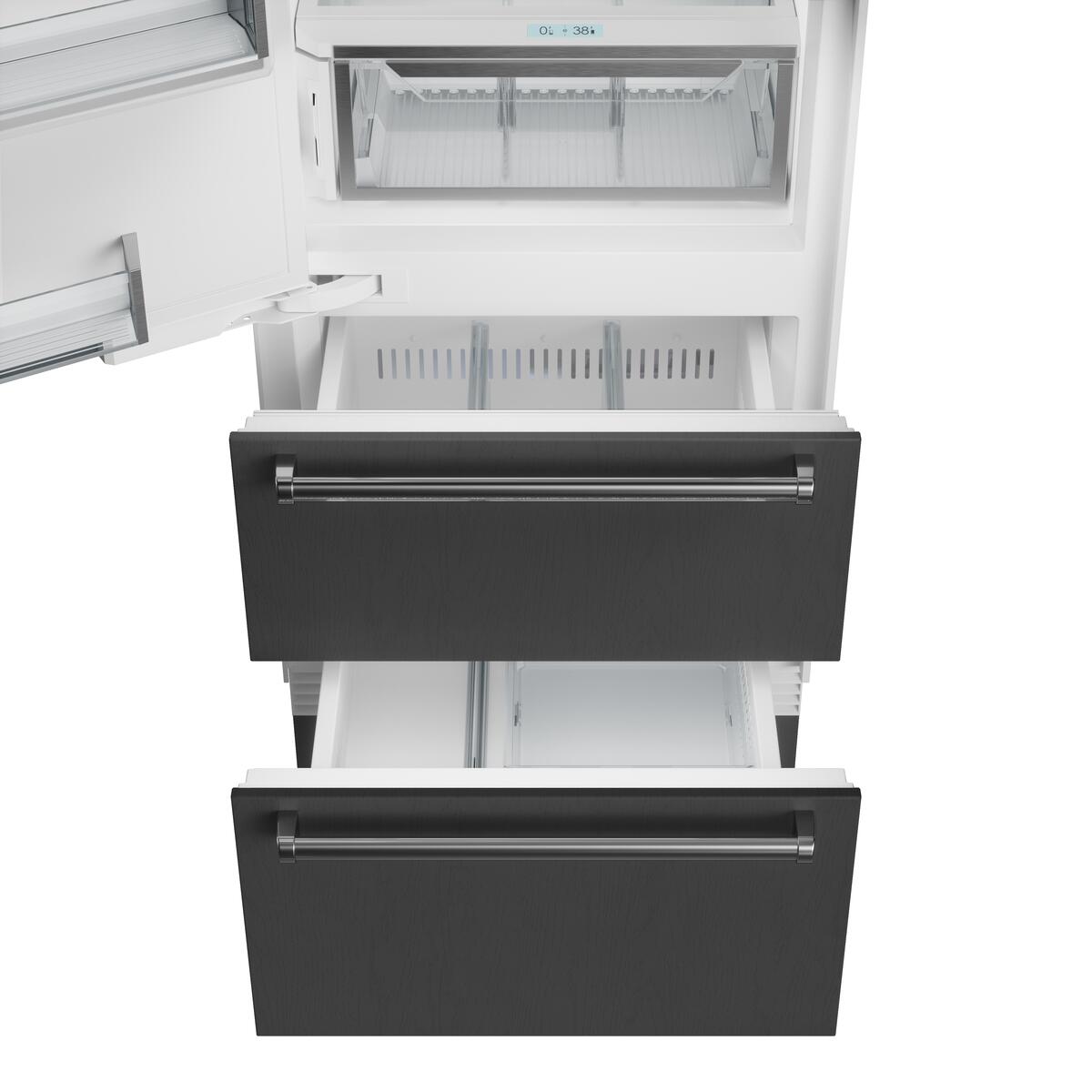 • 2 full-extension roll-out freezer drawers; one with adjustable dividers