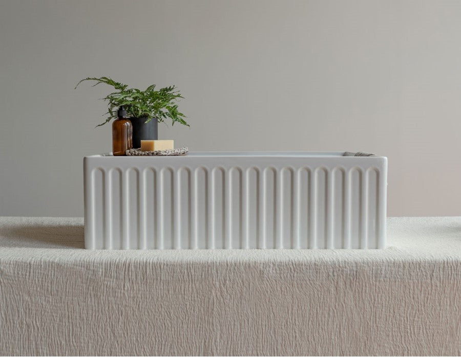 The Menton collection is elegant, modern, and luxurious. It's available in two beautiful finishes: Matte Black and Gloss White. The Menton collection is a lovely addition to any kitchen, with multiple ways to install this sink. You can choose the fluted or flat apron front, so it will be easy to find the perfect fit for your kitchen decor. The finish is soft, lovely, and warm—a perfect complement to any kitchen. And this sink feels more modern than other traditional sinks without sacrificing elegance.