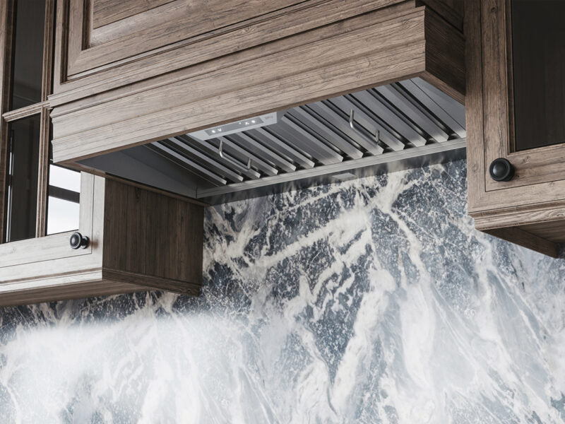 Monsoon Connect is unique in the marketplace. Optional dual 1300-CFM PowerWave™ blowers and stainless steel baffle filters make for a powerful, performance-driven range hood insert that is easy to clean. With a wireless remote-control option and Zephyr Connect, our most advanced operation system makes the Monsoon Connect the most quiet and energy efficient, one-piece liner available today. Dual blowers available on the 36”, 42″ and 48″ models.