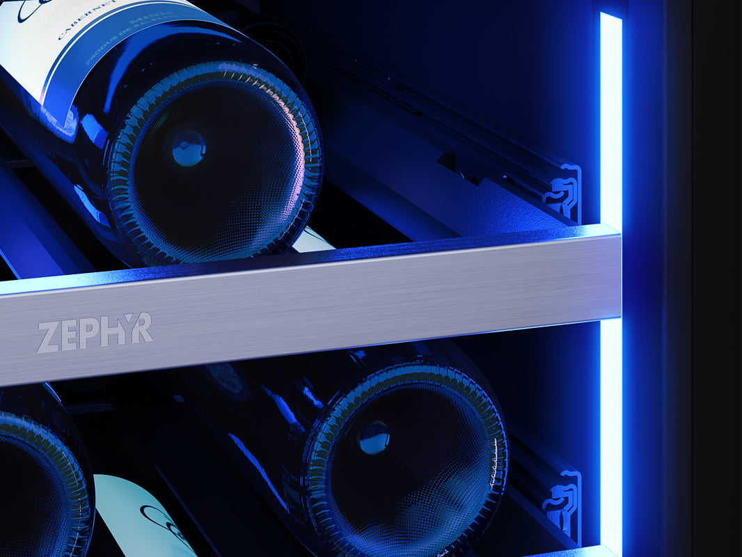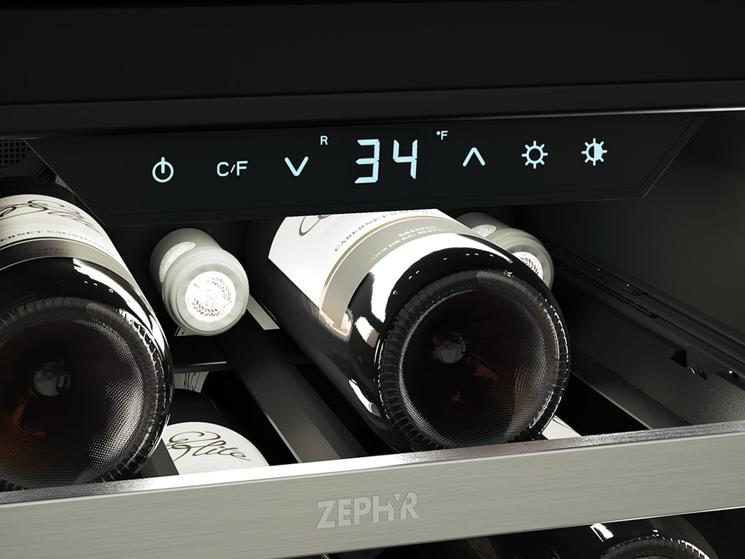 For the lover of fine wine and fine design, our Presrv™ 15” Single Zone Wine Cooler is as cool as it looks. Featuring Full-Extension Wood Racks, PreciseTemp™ temperature control for maintaining accurate temperatures, Active Cooling Technology to ensure even cooling, and a vibration dampening system to minimize wine disturbance. New enhancements include mood-setting LED light strips in three colors and four light levels and an updated kickplate with lock.