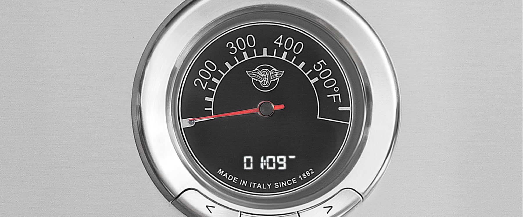 The 4.6 cu.ft electric self-clean oven with dual diagonal convection allows even baking and roasting on 7 shelf levels. A 2.4 cu.ft auxiliary electric oven with broiler helps prepare multiple dishes at the same time. Bertazzoni ovens are equipped with an extra-large highpower broiler for broiling and grilling.