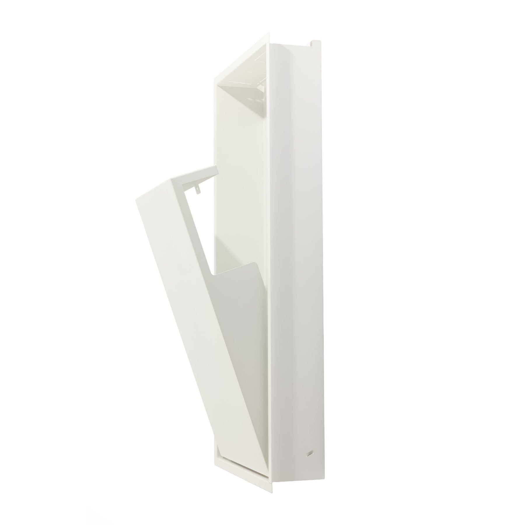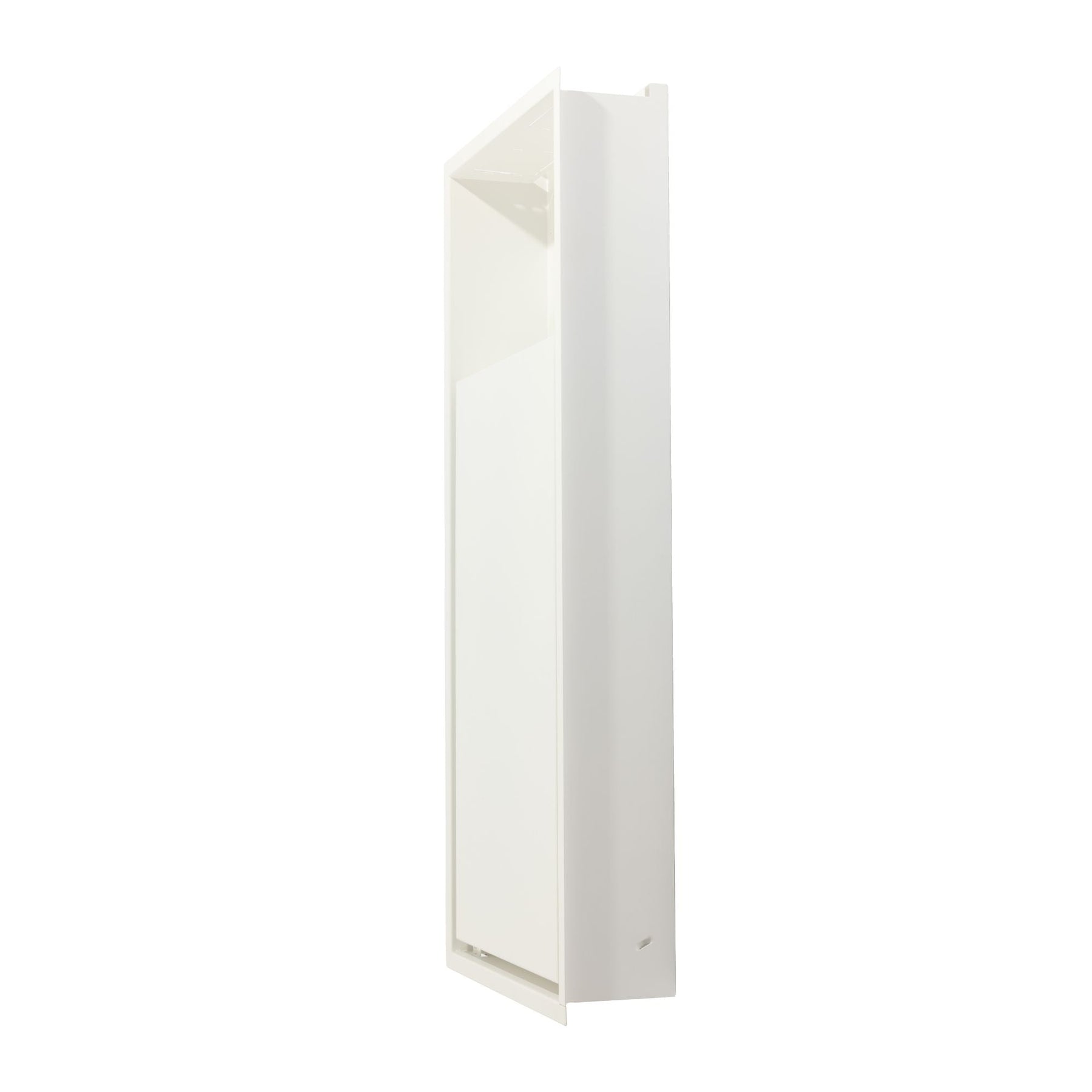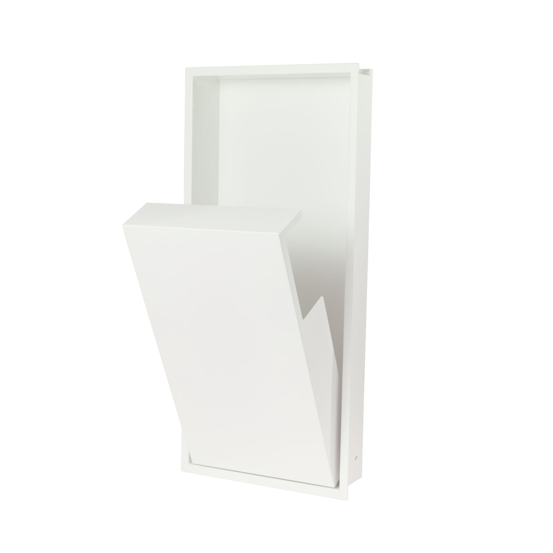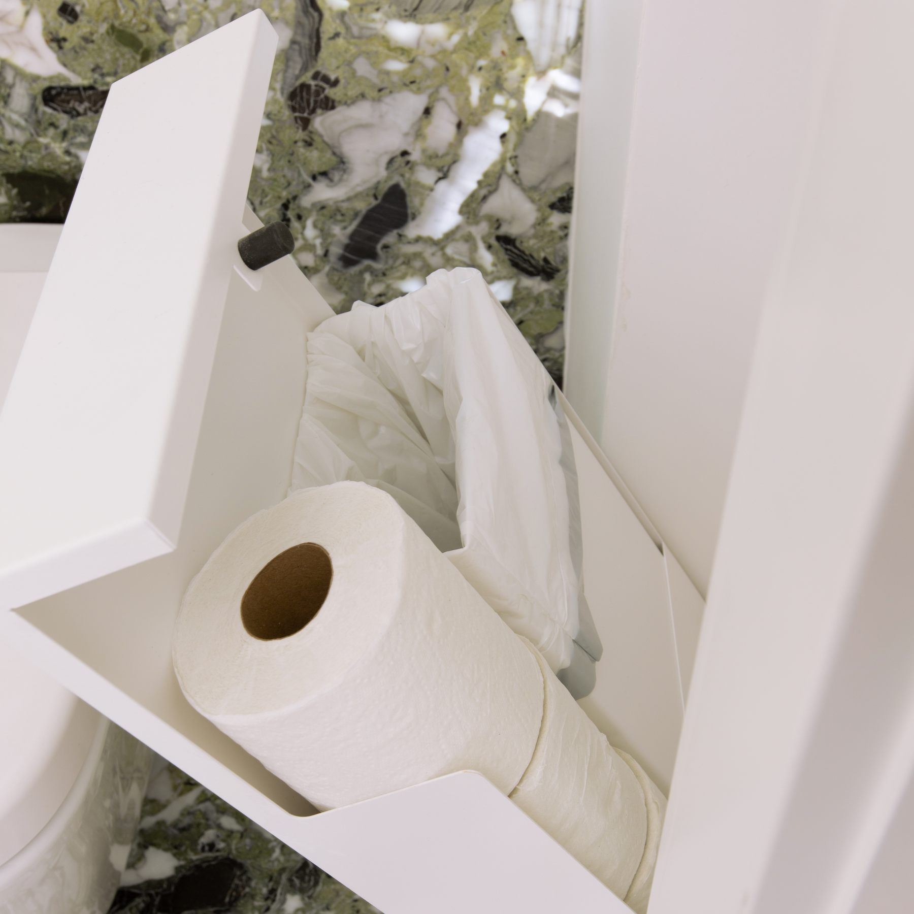 Ultra-minimal water closet kit that holds all your bathroom-y stuff! Designed with a hidden door that stores a garbage bin, and other unslightly bathroom essentials. Integrate a toilet paper holder* and LED lights* in the recessed channel above - customizations are unlimited!