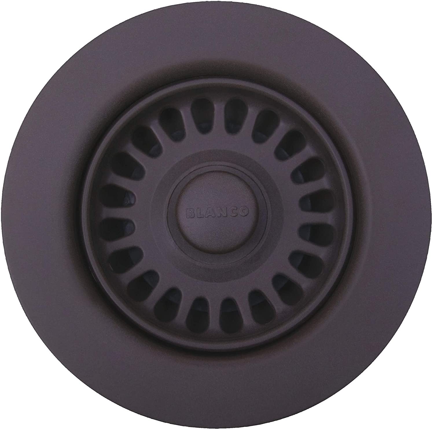 Color matched garbage disposal flange for Blanco Silgranit kitchen sinks.
