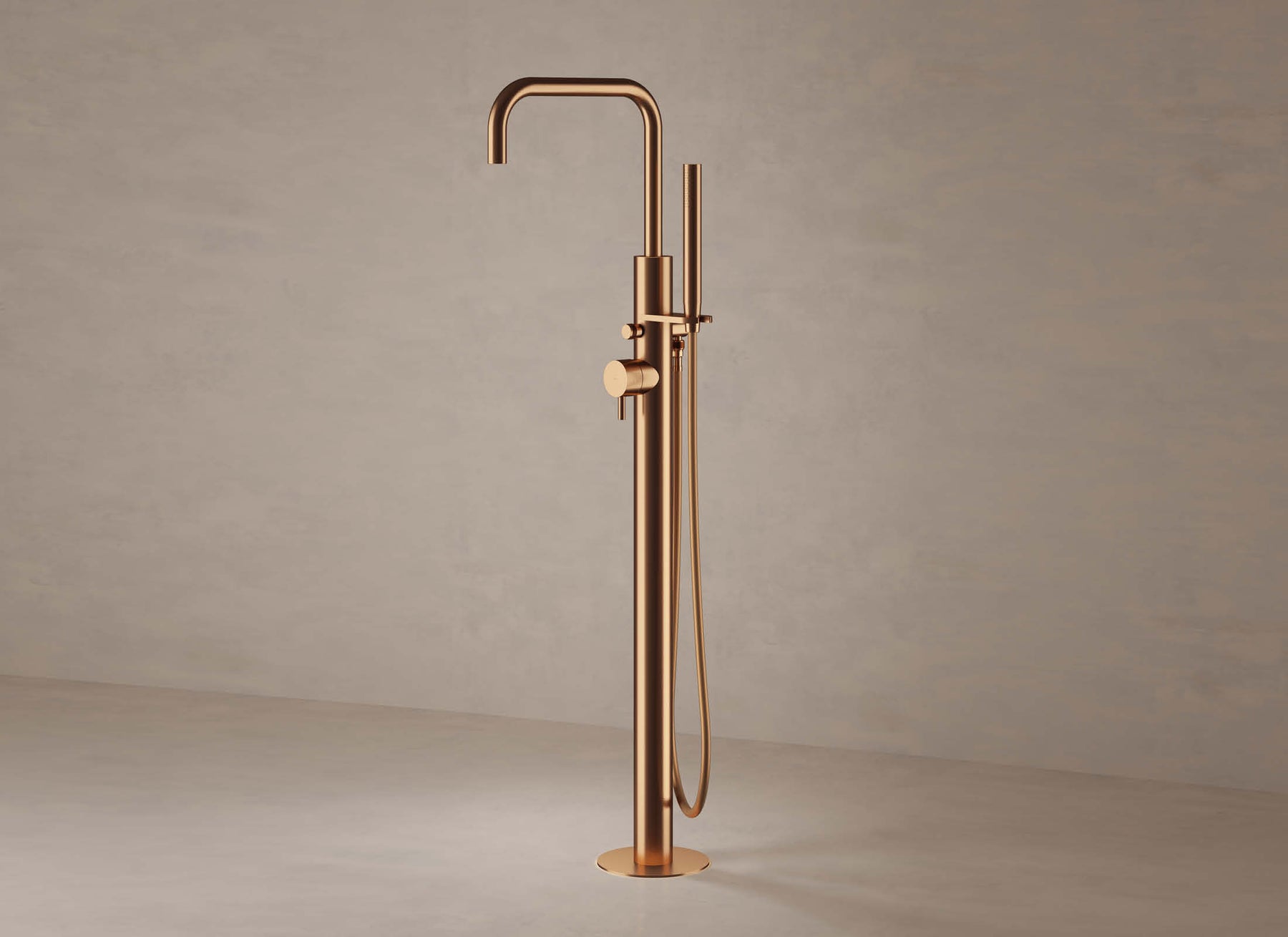 MGS Bagno Minimal Stainless Steel Floor mount Tub Spout with Handshower