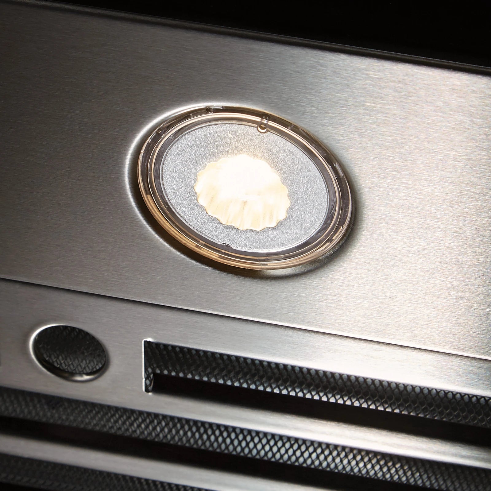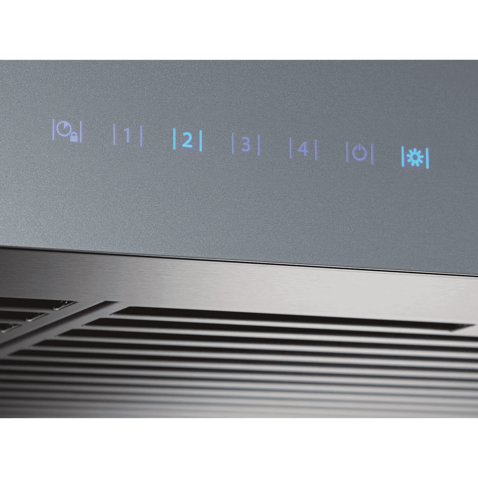 • 4-speed electronic controls with blue or white backlighting and 5 minute delay-off feature keeps hood running after cooking to ensure smoke & odors have cleared the environment