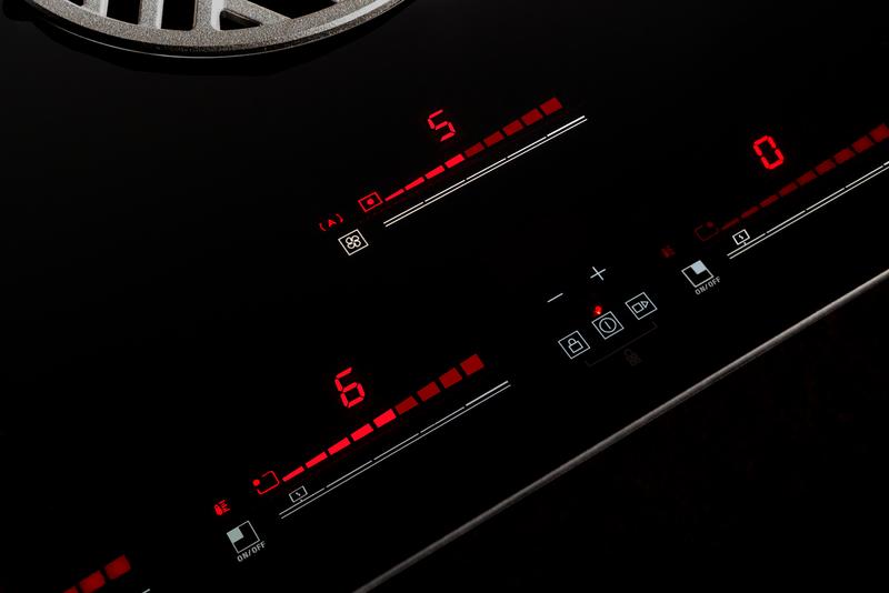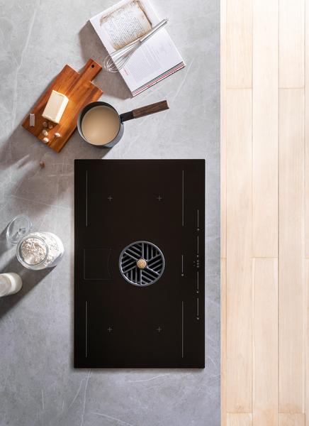 This 36 inch induction downdraft cooktop integrates powerful induction cooking and innovative ventilation. It is equipped with 4 cooking zones and each area has 9 power levels plus booster. A intuitive touch-through-glass user interface allows for instantaneous cooking and aspiration setting. The 2 bridge areas allow to combine two cooking zones to create a single larger zone for large cookware.