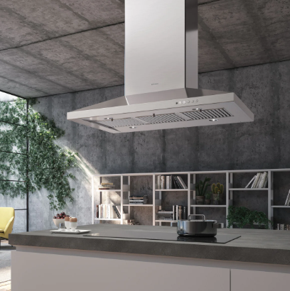 • Featuring a sleek pyramid-style canopy island design, this hood combines premium aesthetics with functionality.