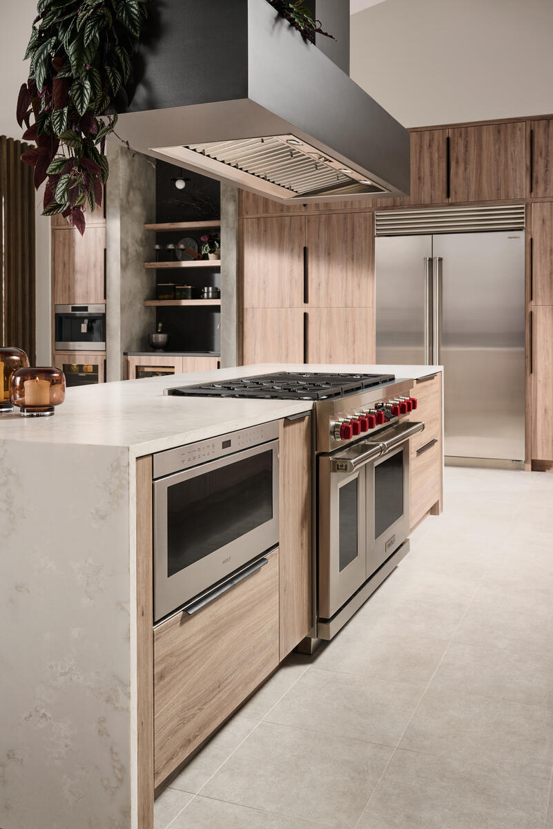 • Install into surrounding cabinetry to coordinate with other Wolf built-in ovens and warming drawers